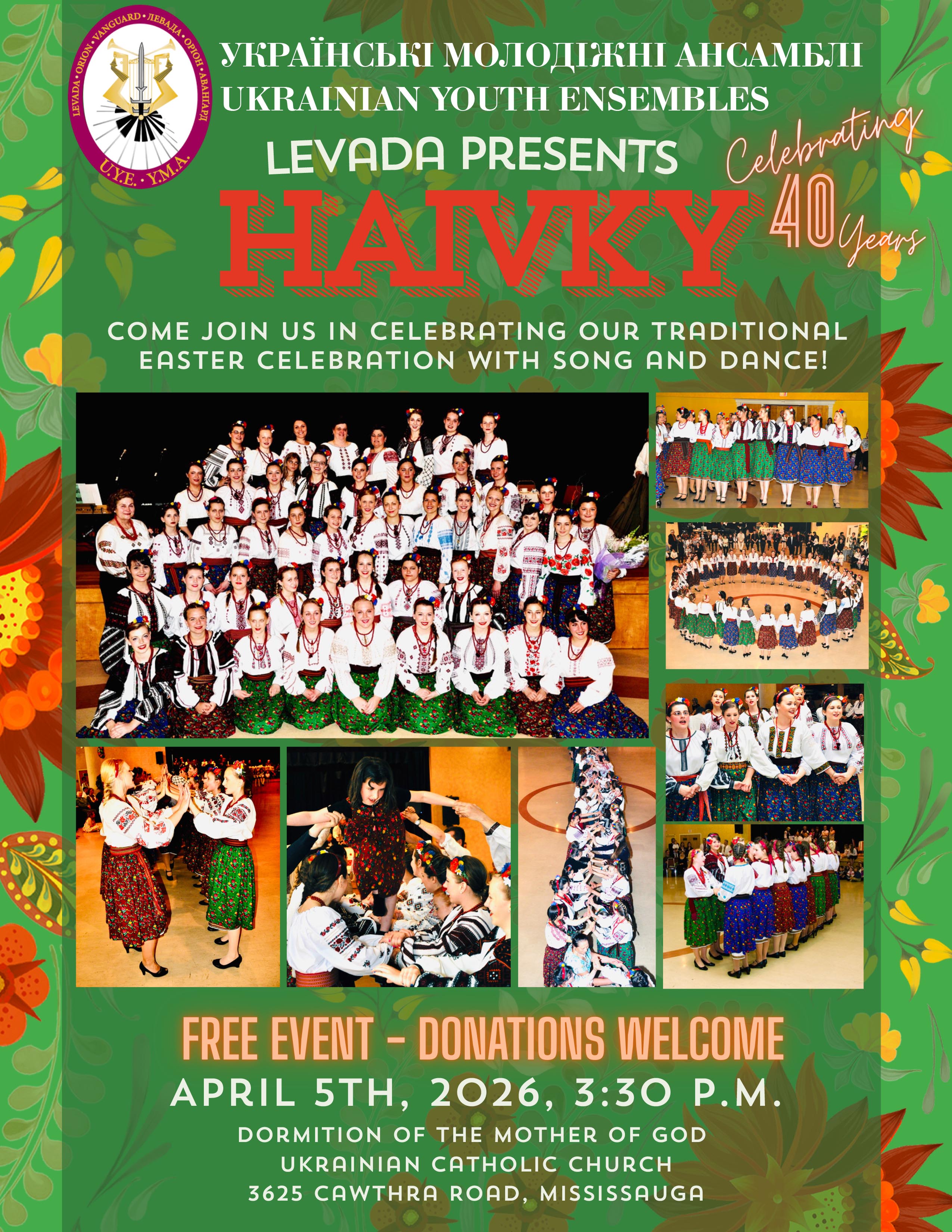 If there are any questions with regards to this situation and/or to ensure that you are getting the tried and true performance excellence of the Levada and Orion Choirs, and Vanguard Band, of the Ukrainian Youth Ensembles please contact our Executive President Walter Hontar (president@ukrainianyouthensembles.com), or Vice President Roman Haruk (vp@ukrainianyouthensembles.com) or call our ensembles office at 416-896-5808 during normal business hours.